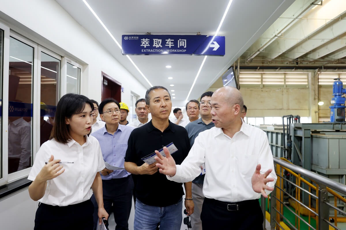 集团总裁陈红良,集团高级副总裁、华友新能源产业集团总裁陈要忠,集团高级副总裁、华友新材料产业集团总裁徐伟,集团总裁助理、华友循环产业集团副总裁鲍伟等陪同参观座谈。